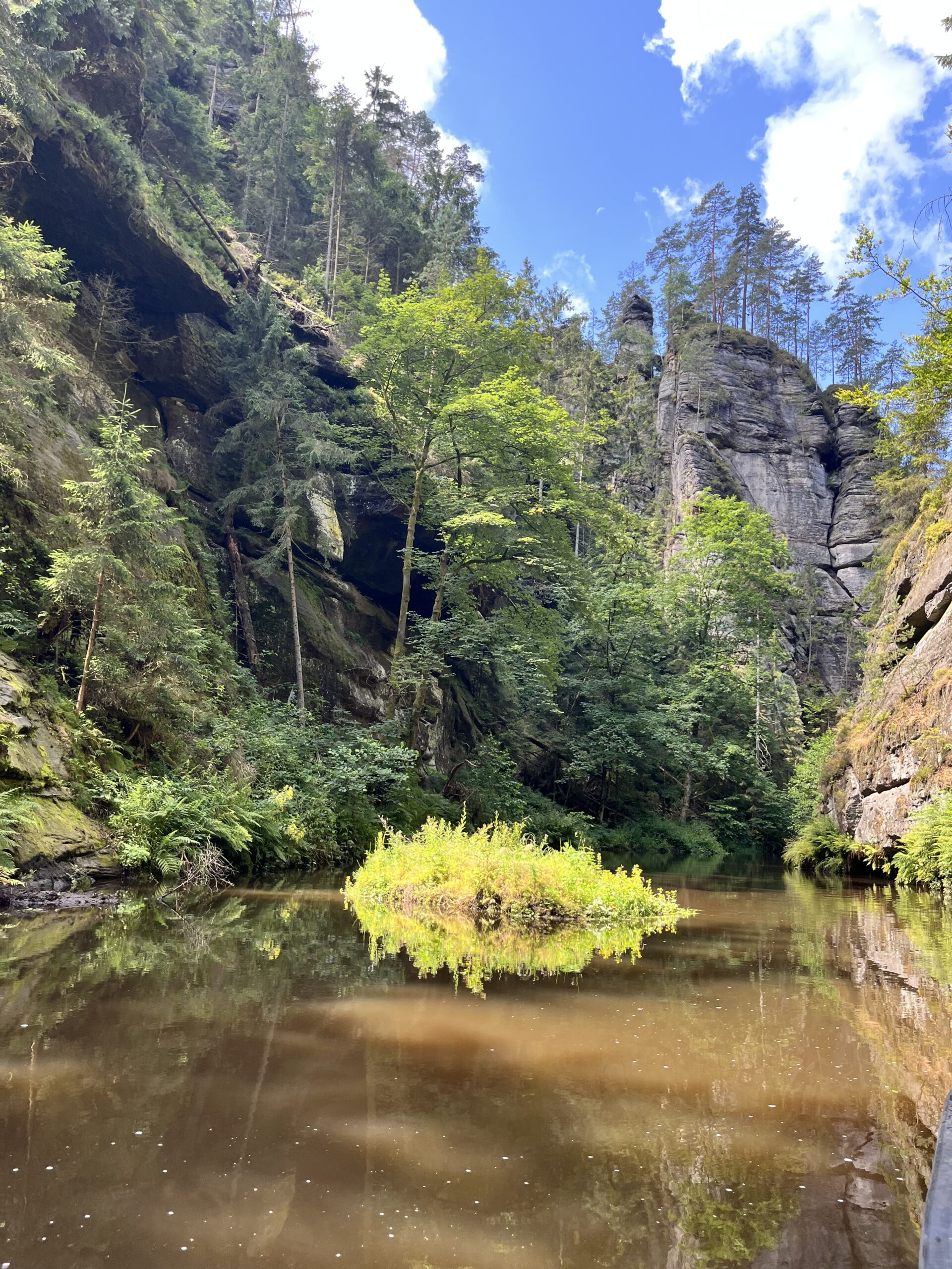Floden Kamenice har skåret sig igennem den bløde sandsten i området og dannet to spektakulære kløfter: Edmundova soutěska (Edmund’s Gorge) og Divoká soutěska (Wild Gorge). Vi var i Edmundova soutěska. Disse gletscher lignende passager har klippevægge op til 50–150 meter høje, der stiger dramatisk op på begge sider af vandet. Floden løber ud i Elben.