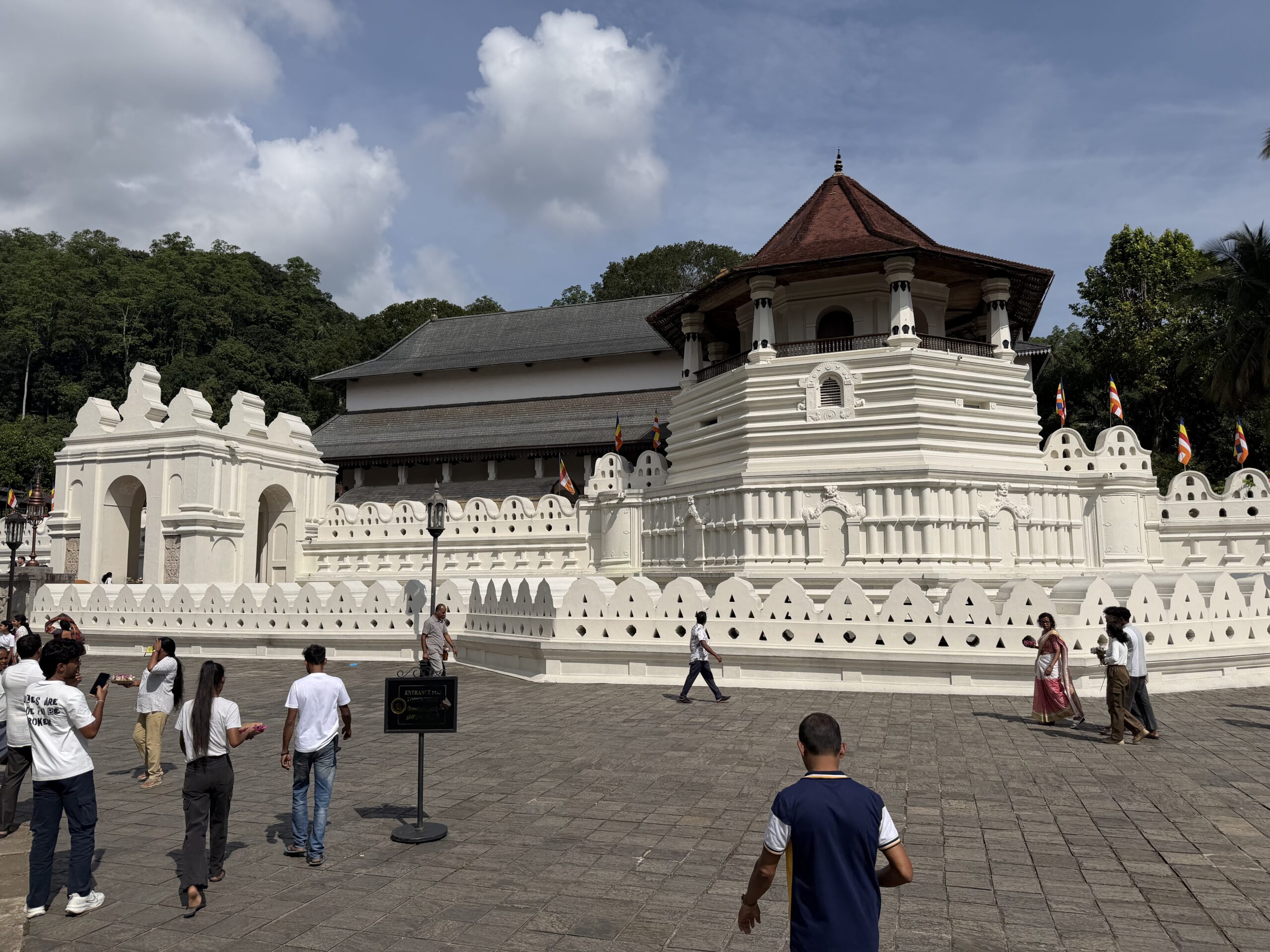 Derfor startede dagen med et besøg i Tandtemplet (Sri Dalada Maligawa), som er et af de vigtigste buddhistiske steder i Sri Lanka. Den korte version er, at templet huser en tand fra Buddha, som i det 4. århundrede efter Kristus blev smuglet fra Indien til Sri Lanka. Man mente, at den retmæssige hersker over landet var den, der beskyttede Buddhas tand.