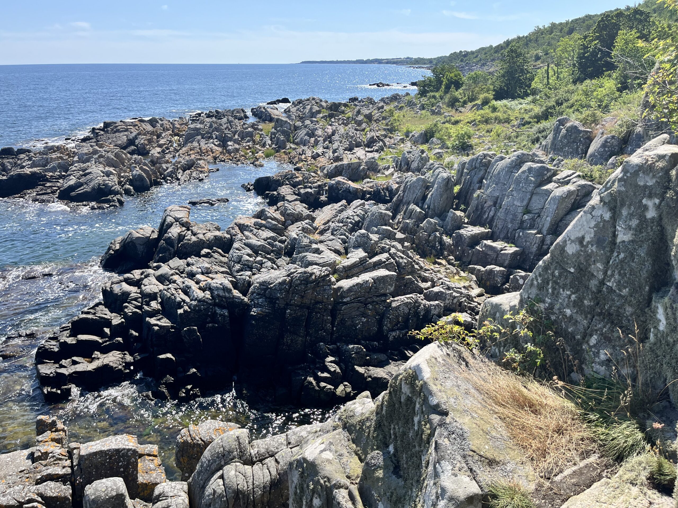 Vi forlader Gudhjem tidligt men i fuld sol. Det er en virkelig smuk morgen. Rygsækkene kommer på skuldrene igen, og vi fortsætter sydpå, langs Bornholms østkyst.