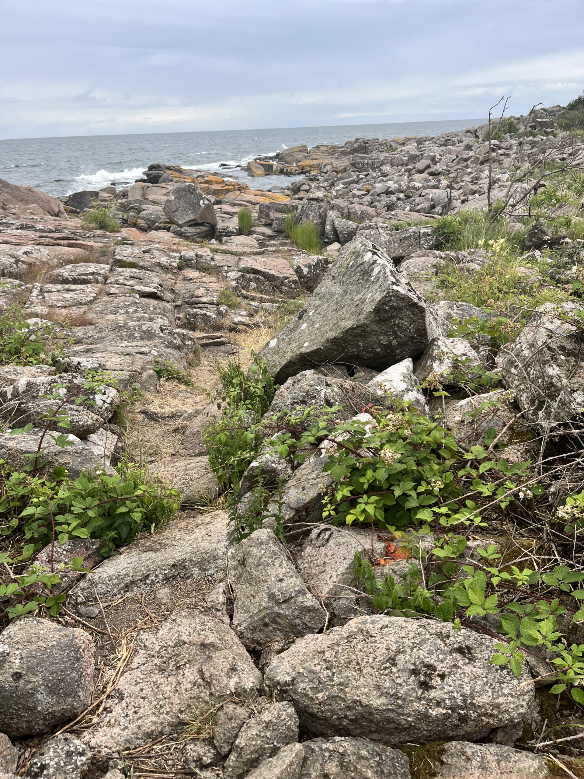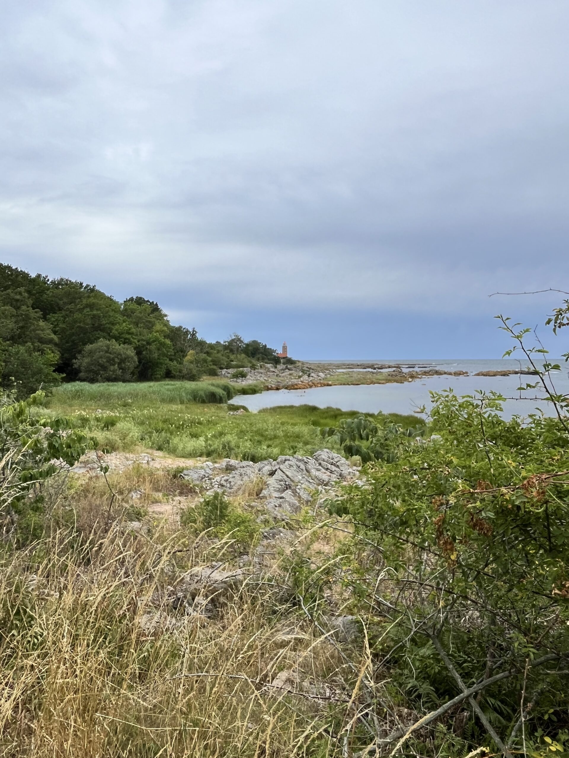 Efter en halv dårlig nat på nogle virkelig elendige madrasser på Svaneke Vandrehjem satte vi tidligt ud på kyststien. DMI havde lovet regn – meget regn – så det gjaldt om at komme så langt som muligt, inden himlen for alvor åbnede sig.