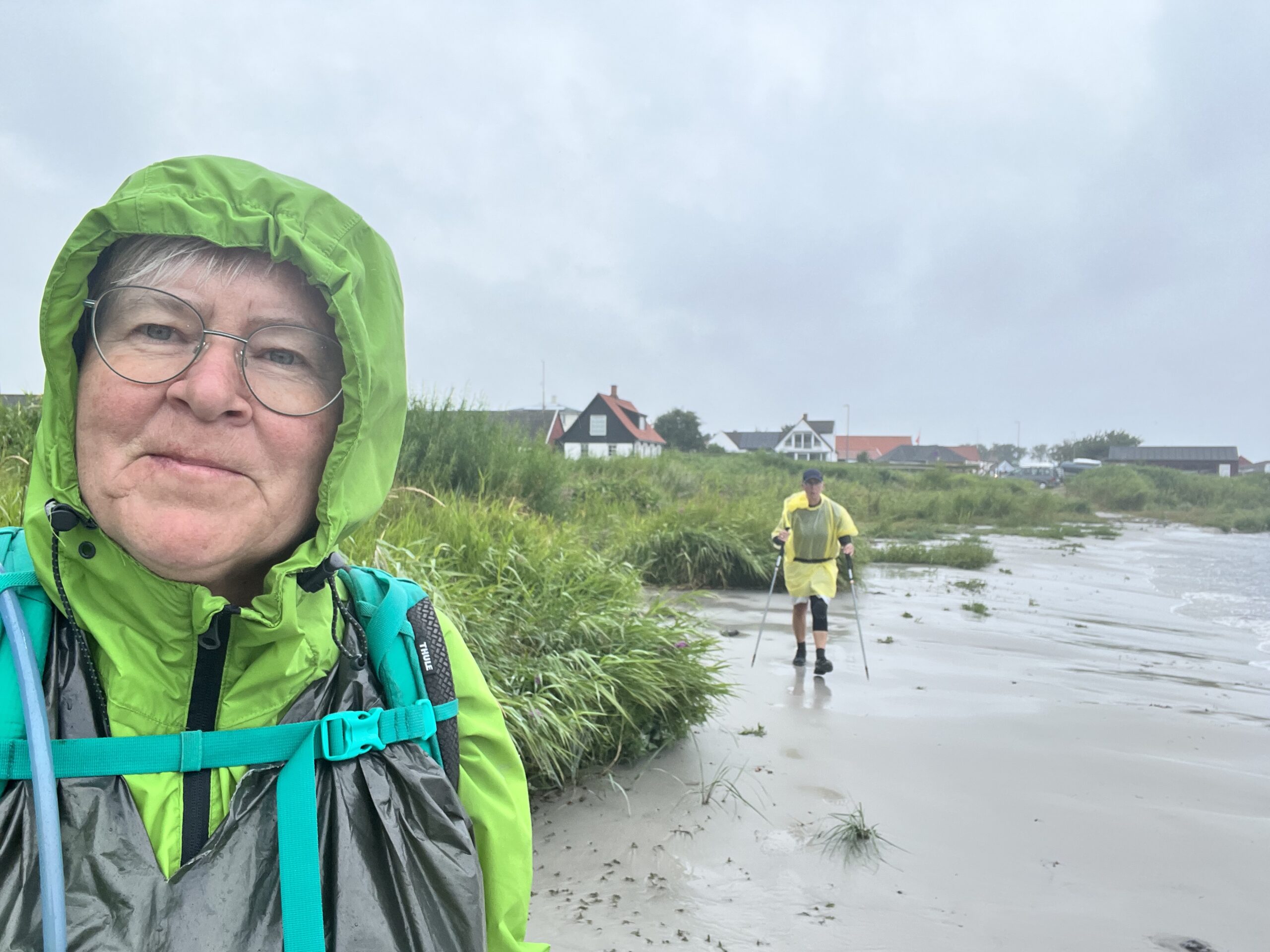 Turen fra Nexø til Snogebæk foregår i silende regn. Der er ikke mange stop til at nyde udsigten – det handler bare om at sætte den ene fod foran den anden og holde rytmen.