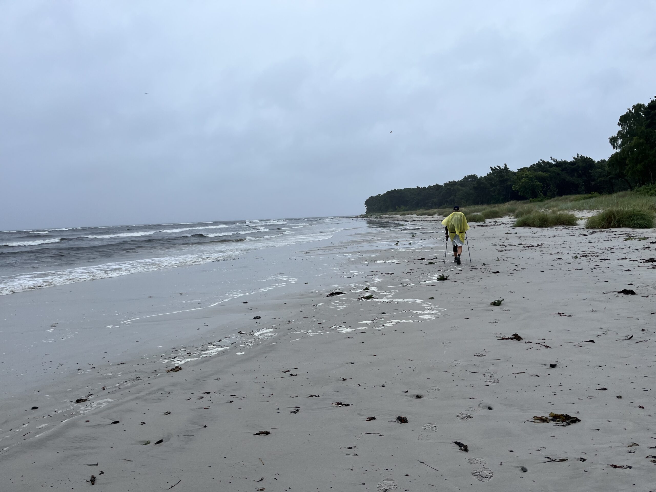 De sidste fem kilometer til Dueodde Vandrehjem går ad stranden. Her, på en af Danmarks smukkeste og mest ikoniske strande, er der ikke et menneske at se.